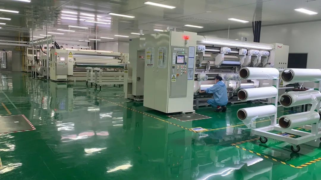 如今,走进中材锂膜滕州基地内的生产车间,可以看到不少区域都实现了无人化生产,仅有几名工作人员在中控室的屏幕前控制生产线的运转。在质量控制车间,工人们在精密仪器上有条不紊地进行着检验工序。