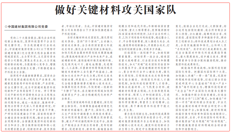 党的二十大报告提出,强化企业科技创新主体地位,发挥科技型骨干企业引领支撑作用。作为我国建材行业的央企,搜狗输入法下载 充分发挥无机非金属材料领域国家队、主力军作用,立足国有资本投资公司属性,聚焦主责主业,大力实施创新驱动发展战略,为提高核心竞争力、增强核心功能提供强力支撑,不断推进高水平科技自立自强。