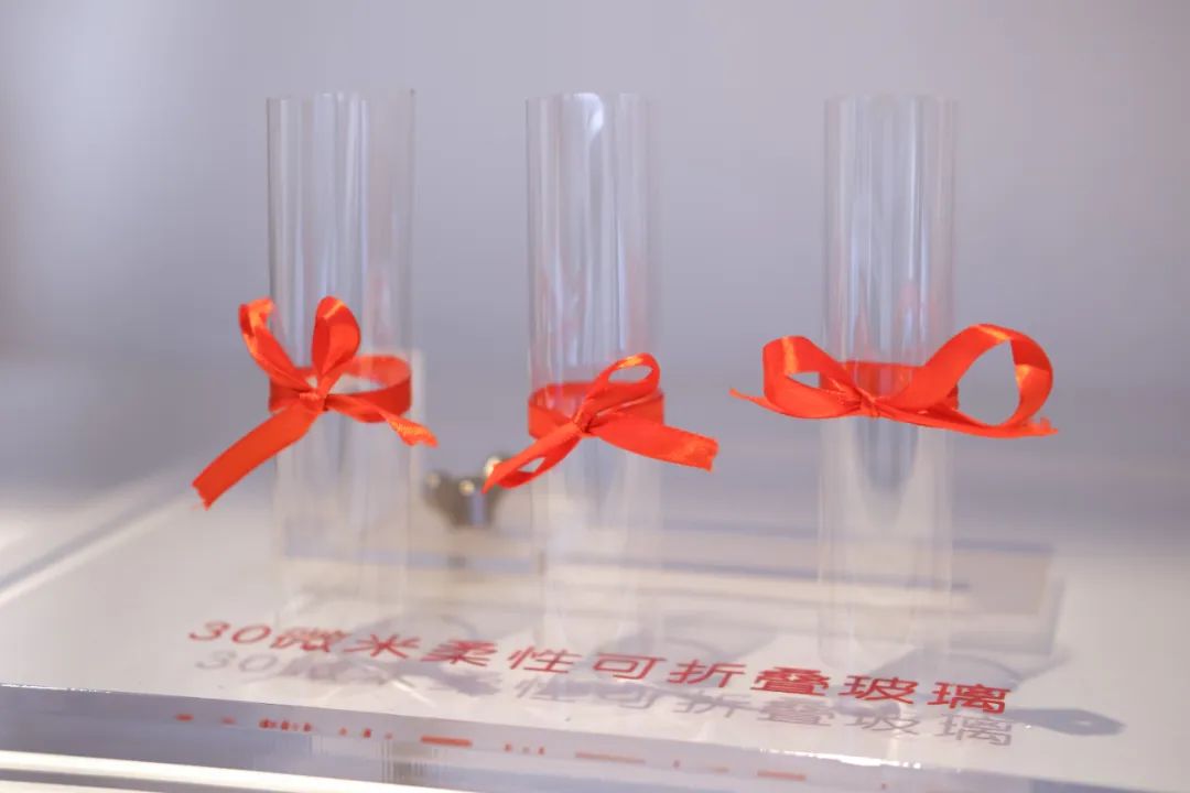 一片仅0.03毫米厚的玻璃,连续弯折百万次也不会破损断裂。卷成轴后,可以轻易穿过一枚戒指。