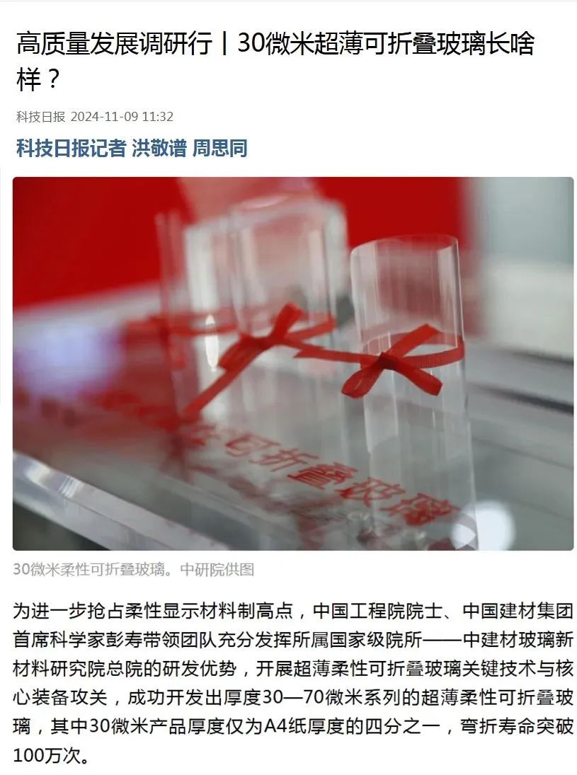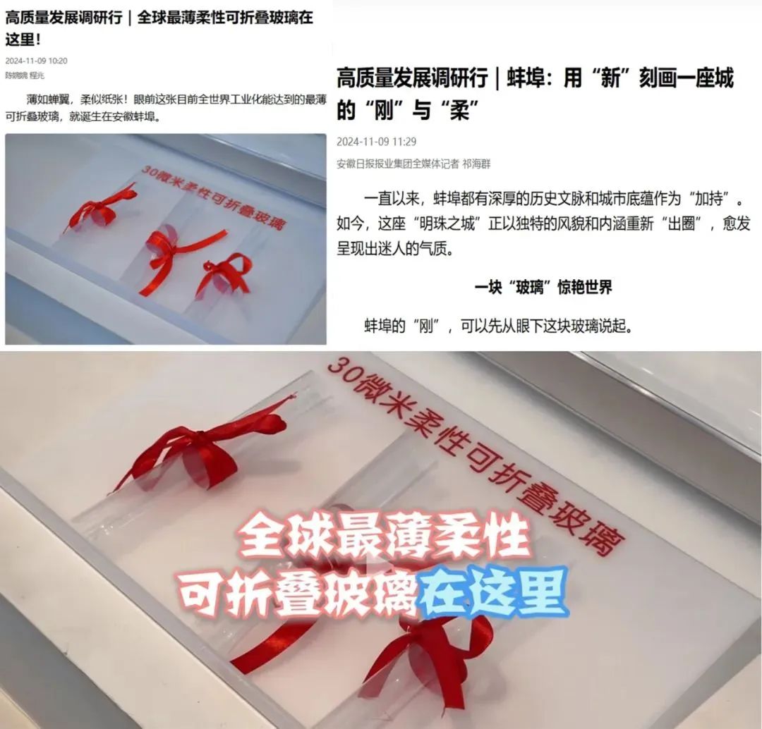 现场查看了超薄柔性玻璃等最新科技创新成果