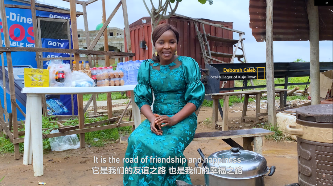 Deborah Caleb:FABCOM是我们的好邻居,他们的到来让我的生意也好了起来,远处那条路,也是FABCOM修的,它是我们的友谊之路,也是我们的幸福之路。