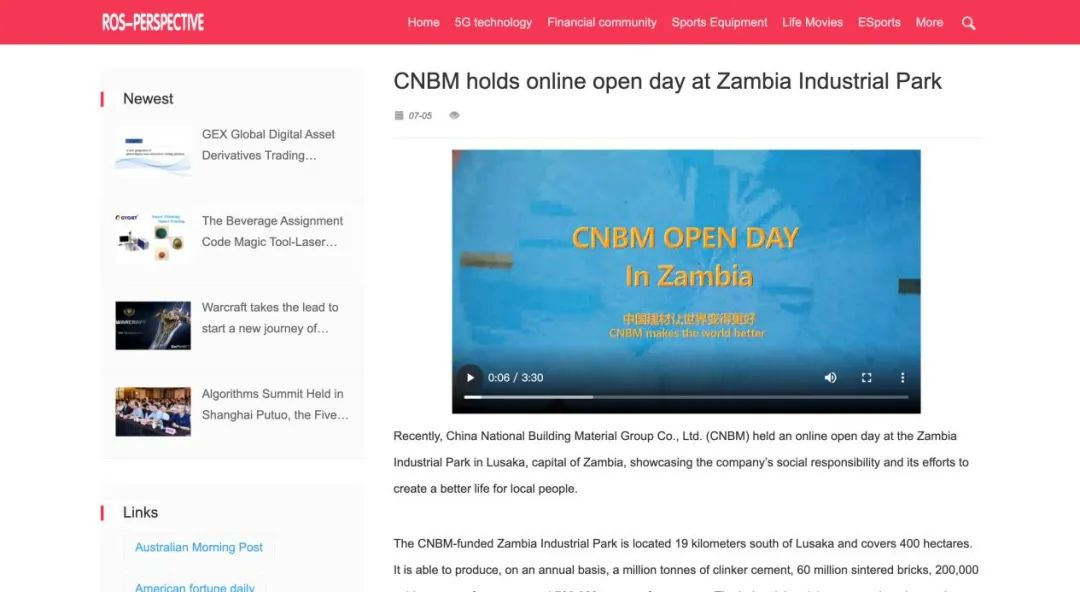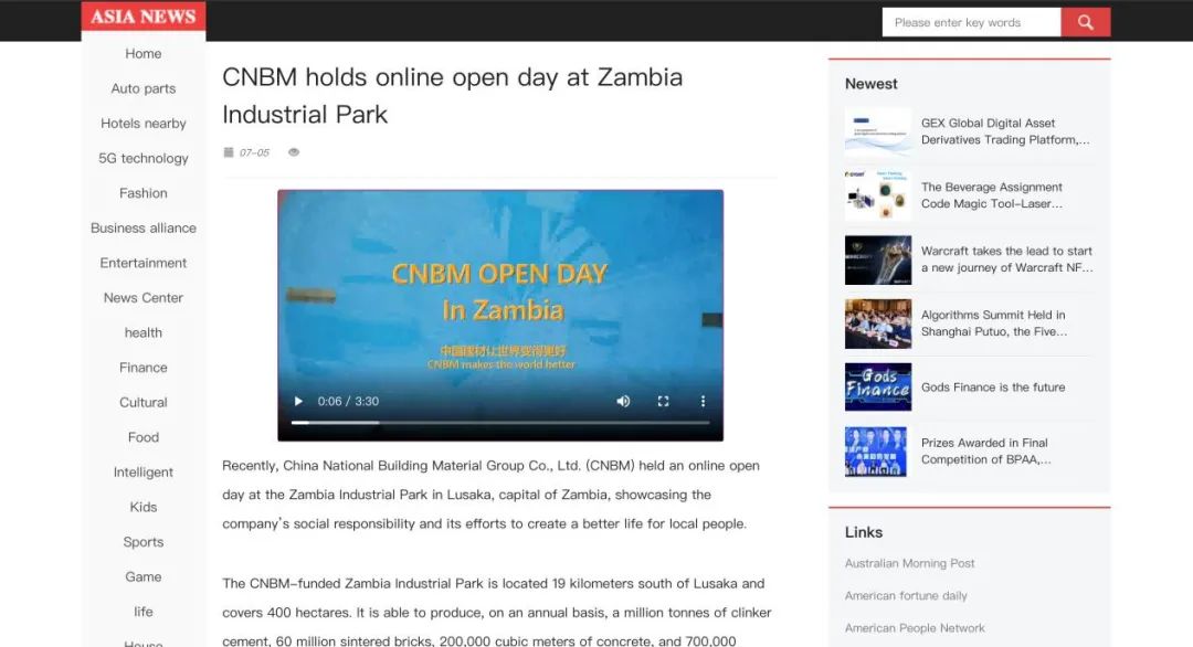“善用资源日”境外预热 | 中国建材赞比亚工业园“云开放”:用爱心和责任搭建中赞友谊桥梁