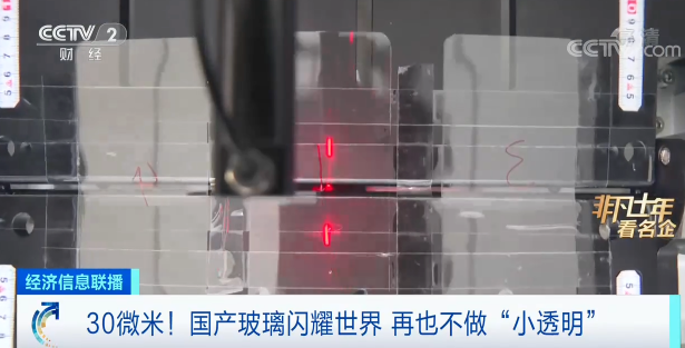正在进行弯折实验的就是三块30微米厚的超薄柔性玻璃。在完成了百万次近乎对折的弯折实验后,玻璃表面依然完好无损。如果把它用在折叠手机上,可以解决使用有折痕的痛点。弯曲自如、薄如蝉翼,只有破碎时才会提醒人们它是块玻璃。在超薄柔性玻璃上的突破,从源头上保障了信息显示产业链安全。