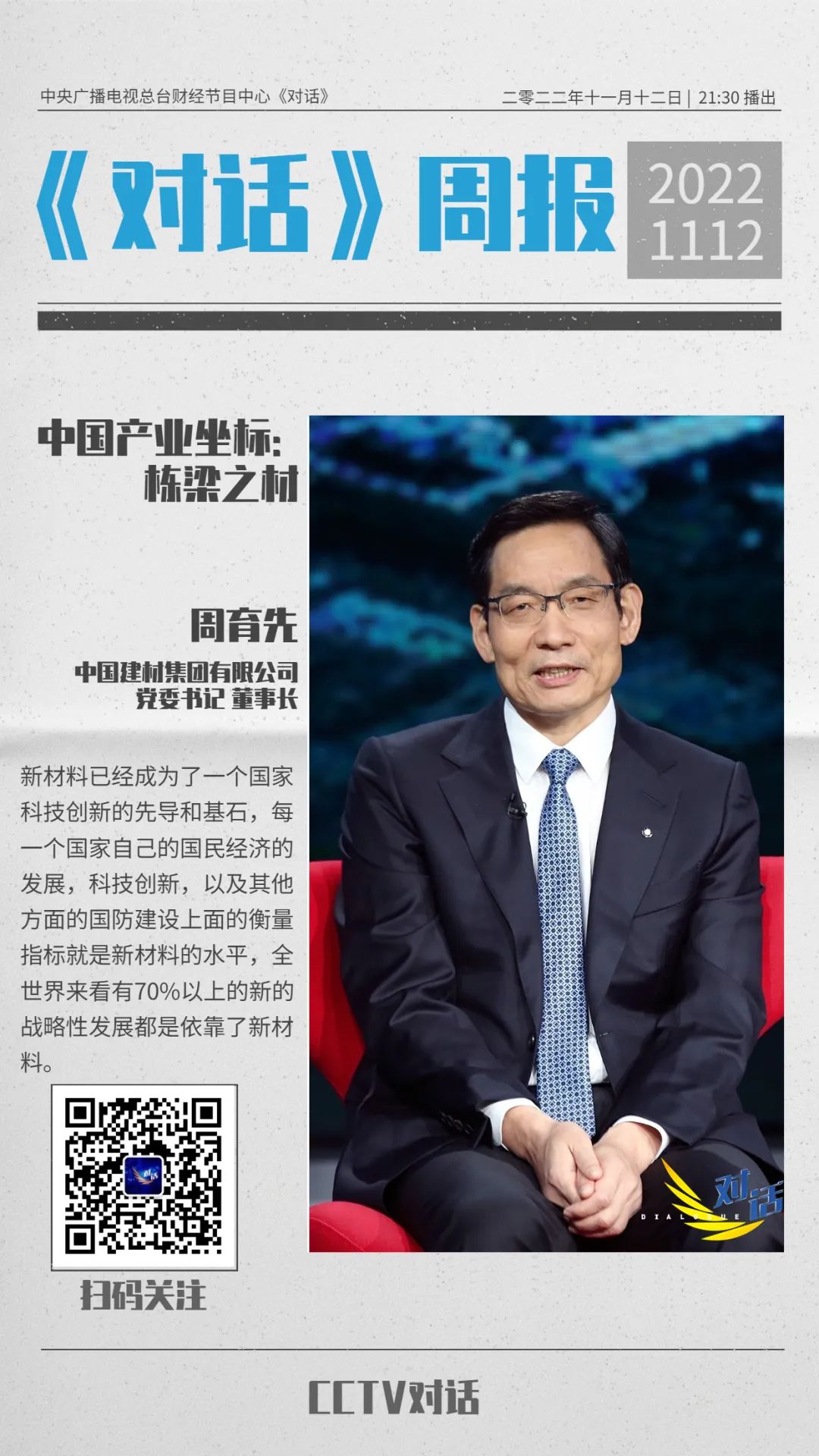 今晚21:30!央视《对话》周育先:中国产业坐标之栋梁之材