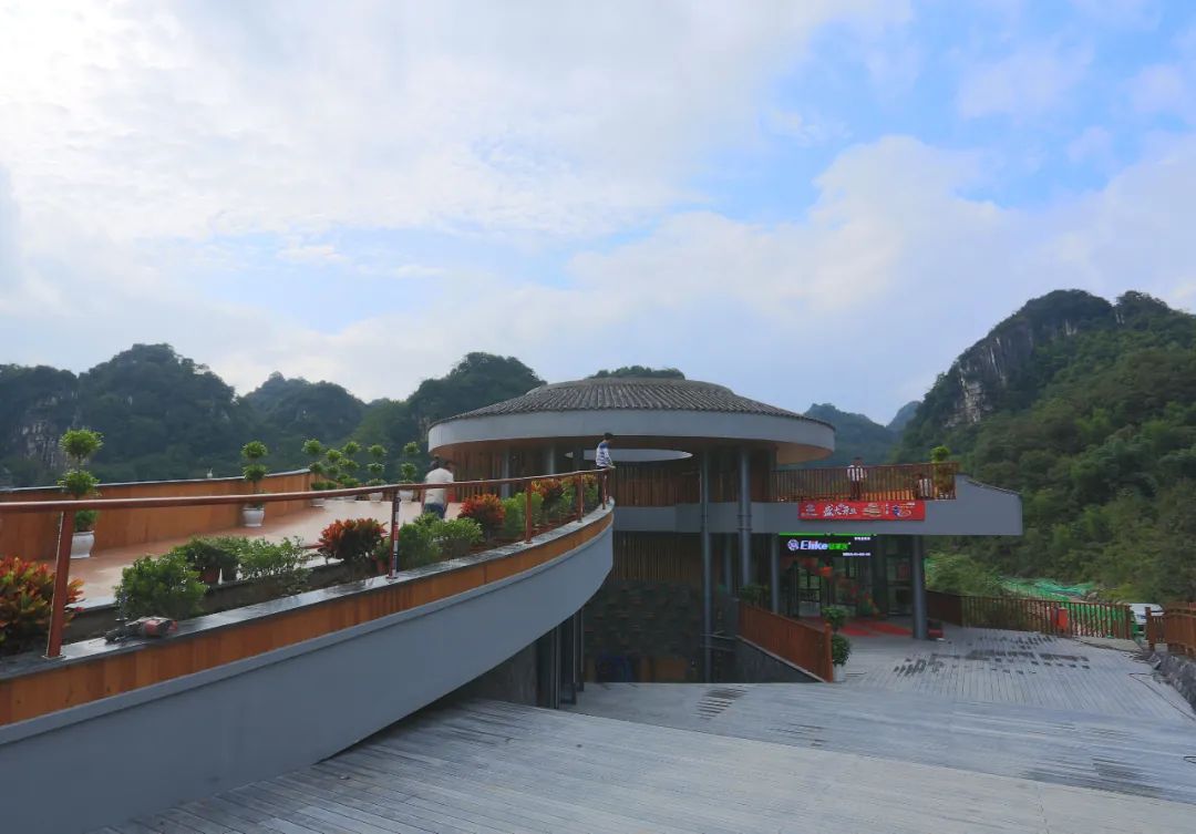 世界地质公园、国家级风景名胜区、亚洲最大的石海、地球特大的天坑……这里不仅景色奇异,还极具民俗风情,尤其是当地独有的僰(bó)人文化,古老而神秘,充满着传奇色彩。在这里,我们建设的僰寨驿站格外引人注目,以天坑、僰人文化的牛角、原石、太阳纹等元素为设计理念,充分展示了神秘的僰人文化,是旅游线路中的重要节点。我们还建设了景区售票厅、售卖亭、科普长廊、卫生间等,为游客打造最佳的旅游体验。
