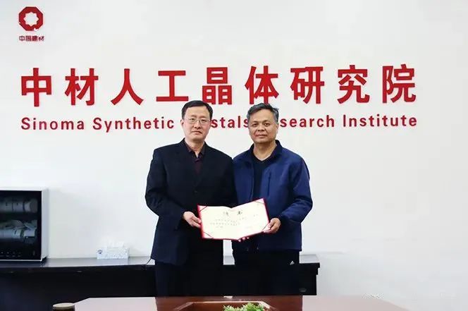 人工晶体院李勇院长(右)向张福昌博士(左)颁发聘书
