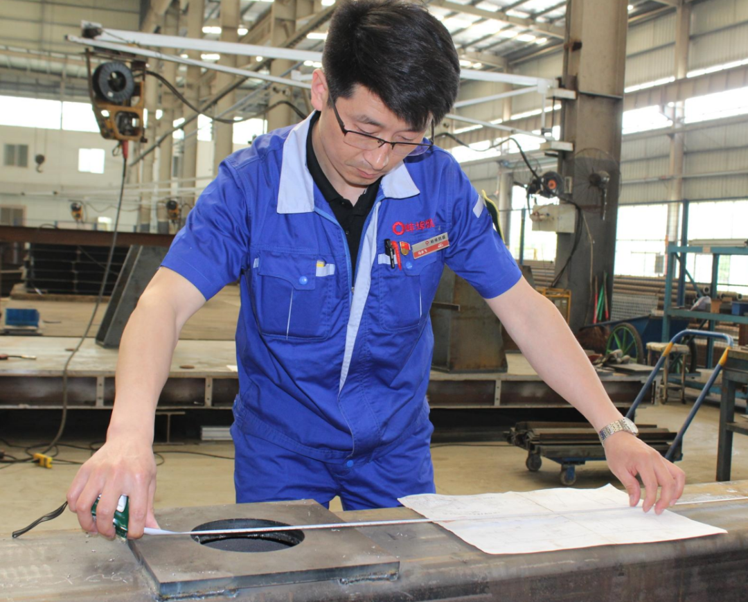 生产过程的工艺革新和节能降耗是马永飞勤常常思考的问题。在压延机退火窑壳体制作过程中有3种不同尺寸的螺纹吊杆,螺母需要旋入正常工位,现场的组焊人员在此项工步上需要投入较大的工作量,面对生产过程的技术问题,马永飞提出了一套螺杆旋入定位工装,并迅得到采纳,使得单套整体部装效率提高了40%。在节能降本方面,马永飞有许多改进工艺的建议亮点,其中拉边机横梁工艺孔原先是结构班组划线气割而成,存在着尺寸公差和修割表面变形的问题,他结合与生产焊工多年的实践经验,提出该工艺孔在等离子设备加工一次完成,经过工艺技术的实践,取得了较好的生产效益。马永飞常说“我在基层摸爬滚打多年,自己也要不断的学习总结,提出一些实质性建议,当好一名技术助手,这是我融于企业,应该做到的”。