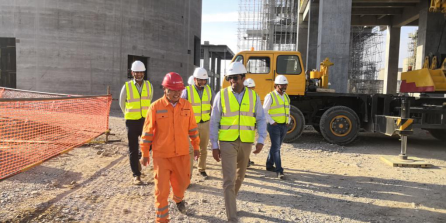 项目开工后,茫茫沙漠高达50度的炎热酷暑令人生畏,从5月到10月是漫长而难熬的高温期。即使夕阳西下,往地面上撒上一盆水也能瞬间蒸发消失。为了避免酷暑施工作业,我们合理规划施工时间,充分利用早晨、夜间施工,在进入高温期前,仅用3个月就抢先完成了熟料库和生料库的滑模工作,规避了高温给土建工作带来的质量和安全风险。同时减少高空作业施工时间,抢抓关键路径施工,仅用时100天将高达100多米的窑尾塔架封顶成功,比预计提前了20天,创造了中国质量和天津院速度,赢得了业主和当地的称赞,成为沙漠里一道靓丽的风景线。