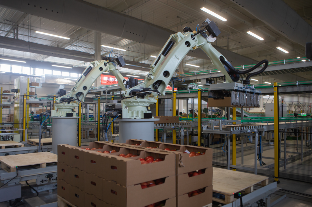 中国建材工程设施农业项目将“植物工厂”注入工业化基因,流水线“生产”蔬菜,构建订单式销售农业新模式、新业态。通过智能温室的“中枢神经”环境监控系统,使植物根据订单时间表精确统一的收获,即摘即食,安全可追溯。自动采收作业机器人采摘后进入机器人包装线,AGV物流迅速装车运往订单城市,颠覆了传统“看天吃饭”的农业耕种模式。“智能植物工厂”使普通农民具有专家能力,让手机变成新农具,让直播变成新农活,让数据变成新农资。一个100亩的温室可以提供70-80个就业岗位,项目所在地的群众不需要背井离乡远行打工,在家门口就可以拥有音乐环绕、环境一流的工作,成为拥有核心技术的产业工人,他们用手机操作控制软件,管理着温室的各种数据,用直播软件当作销售路径,借助发达的物流体系使农产品走进千家万户,设施农业项目用科技创新助力农业供给侧结构性改革。
