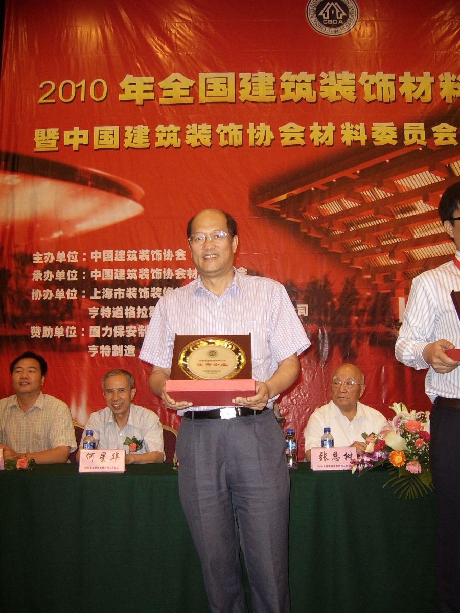 来源:北新集团 发布时间:2010-11-10日前,在中国建筑装饰协会“2010全国建筑装饰材料工作会议”上,由于在我国建筑装饰行业的突出贡献,北新集团被推选为“全国建筑装饰材料行业优秀企业”并受到表彰。北新集团总经理崔丽君被授予“全国建筑装饰材料行业优秀企业家”荣誉称号。此外,经过专家的严格评审,北新欧松?吸音板产?品被授予“全国建筑装饰材料科技创新奖”荣誉称号。这些奖项的获得,是对北新集团多年来倡导健康环保理念,积极推进行业绿色进程,服务大众,回馈社会的认可和赞同。北新集团副总经理邓玉庭代表公司出席大会并领奖。