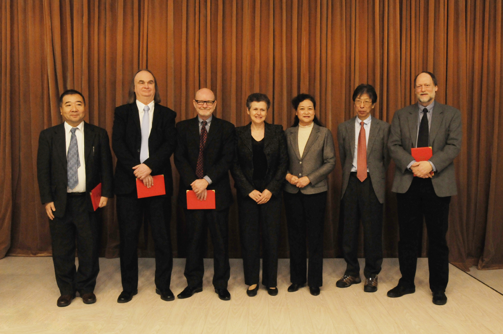 Harald Justnes、Olafur Wallevik、Duncan Herfort、Shunsuke Hanehara、Etsuo Sakai均是国际知名学者,在水泥混凝土领域皆有很高造诣。中国建材总院为了促进国际交流与合作,向国际一流迈进,特聘请这五位专家为总院客座教授。姚燕为他们颁发了聘书,并合影留念。