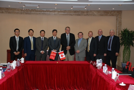 10月14日,加拿大不列颠哥伦比亚省林业厅厅长Steve Thomson、副厅长Tim Sheldan等一行访问北新集团。北新集团党委书记刘贵平、副总经理于险峰与客人进行了会谈。