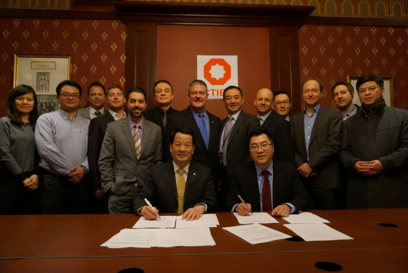 2月26日,中国建材工程美国沃尔玛屋顶电站项目合作签约仪式在纽约举行。中国建材工程董事长彭寿代表公司和SUNPIN SOLAR LLC总裁TOM LI签订了相关合同及协议。此项目是继双方2014年11月首次合作之后的又一次重大合作,也是中国建材工程深入开拓美国光伏电站市场的又一里程碑事件。该项目为凯盛新能源品牌立足美国,辐射北美、南美光伏电站市场打下了坚实基础。