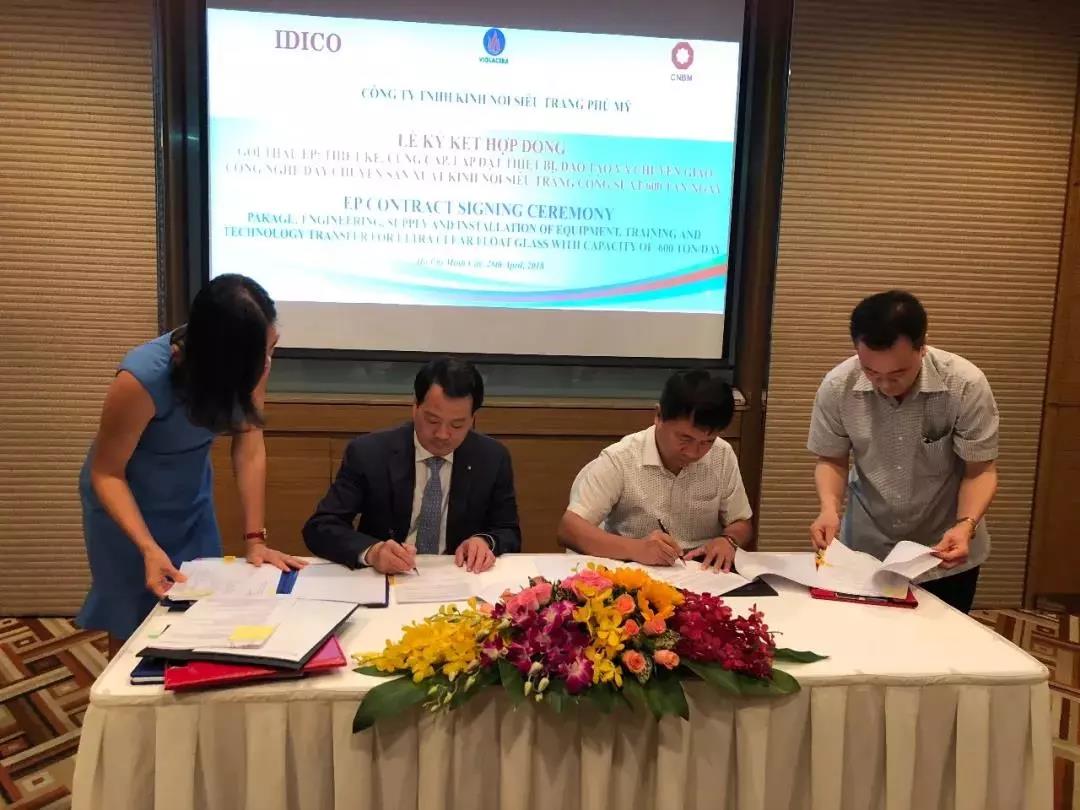 近日,凯盛科技与越南Viglacera公司、IDICO公司签署富美超白浮法玻璃项目总承包合同。凯盛科技总经理彭寿与越南Viglacera公司总经理阮英俊、IDICO公司副总经理范文算出席签字仪式。