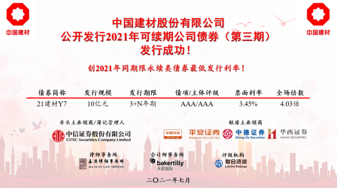 融资创新 狠抓降本 | 中国建材股份永续类债券发行利率创新低