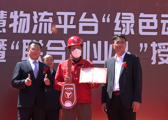 5月16日,中国建材“我找车”智慧物流平台“绿色动能”共享卡车正式上线运营暨“联合创业人”授牌仪式在宁夏银川市成功举行。银川市副市长麦欣甫、西夏区区委副书记、区长张建兵、西夏区发改局局长安峰、宁夏建材集团股份有限公司党委书记、董事长王玉林、宁夏建材集团股份有限公司党委副书记、总裁蒋明刚、宁夏三一重工程机械有限公司总经理王星星、宁夏亘元房地产开发有限公司总经理冯世杰、宁夏三一重工程机械有限公司副总经理曹治平、银川市兴庆区顺潮货物运输服务部联合创业人宋波等出席了仪式。