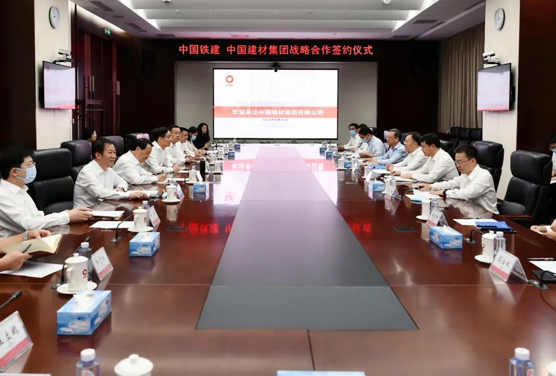 中国铁建发展规划部总经理楼翱,经营部副总经理王庆,中铁十四局集团党委书记、董事长吴言坤,中铁十五局集团党委书记、董事长黄昌富,中国铁建投资集团党委书记、董事长高治双,中铁建电气化局党委书记、董事长万传军;中国建材股份执行董事、副总裁、总法律顾问王兵,中国建材总院党委书记、董事长马振珠,凯盛科技党委书记、总经理张健,集团战略发展部总经理、科技管理部主任郅晓,中材国际党委副书记、总裁印志松,中建材进出口党委委员、副总经理王立鹤,新天山水泥以及集团战略发展部、中国建材股份国际合作部相关负责同志参加了活动。