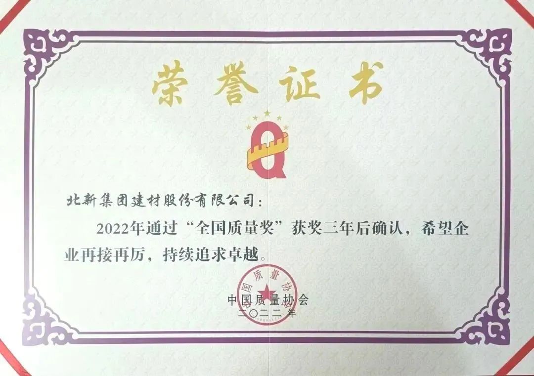 近日,主题为“共创高质量发展新未来:新领域、新要素、新实践”的2022中国质量协会年会在北京召开。大会发布了第十八届全国质量奖企业通过确认组织名单,集团所属北新建材顺利通过获奖三年后的确认评审。全国质量奖是对企业实施卓越绩效模式,并在质量、经济、社会效益等方面取得显著成绩的组织授予的国内质量管理的最高荣誉。此次顺利通过确认评审,是对北新建材在追求卓越、提升产品品质、实现高质量发展方面取得成绩的充分肯定。