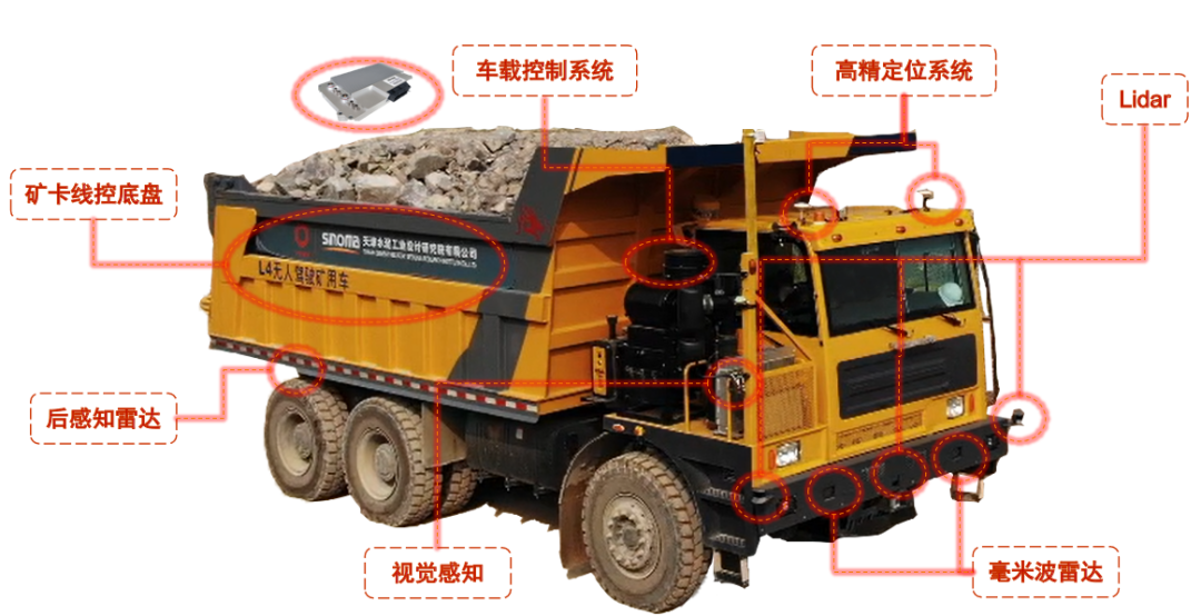 从2019年开始,天津水泥院以安全、绿色、智能、高效、少人为目标,面向露天矿山场景,围绕矿企存在的安全、质量、成本等痛点问题,自主研发基于数字孪生模型的统一数据共享中心、矿山资源管理平台、矿山生产运营管理平台与矿山无人运输调度平台,集成研发无人驾驶矿车。