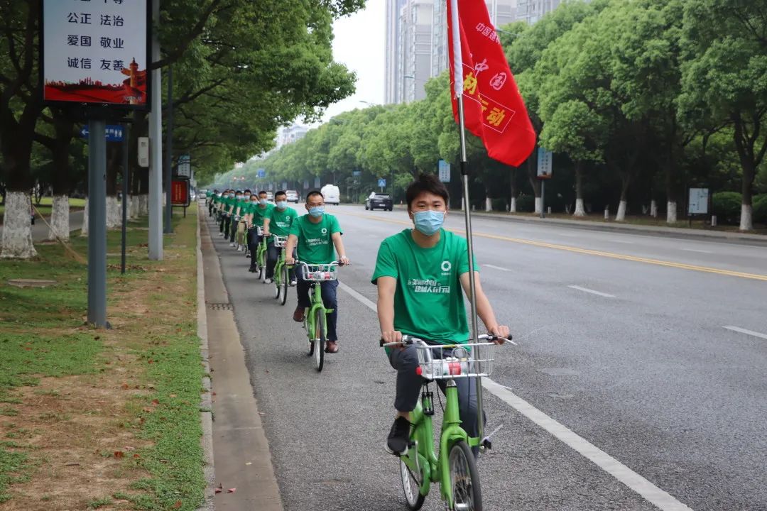 全体活动人员在宜兴市团氿周边开展健康骑行,大家英姿飒爽,一路沿途经过了世纪大桥、氿滨大道、张师桥广场、湿地公园、云溪大桥、宜园等湖光山色,在全程7公里的骑行线上划出了一道靓丽的风景,倡导了节能环保、绿色健康生活方式的同时,引导更多的人积极践行低碳生活,做绿色出行的参与者、宣传员和引领者。
