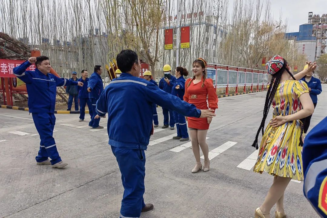 活动人员来到公司“民族团结林”,共同栽种“幸福”果树。大家挥锹填土、浇水培实,现场热火朝天。欢快的音乐响起,大家一同跳起了喜庆的维吾尔族舞蹈“麦西来普”,一片欢声笑语。