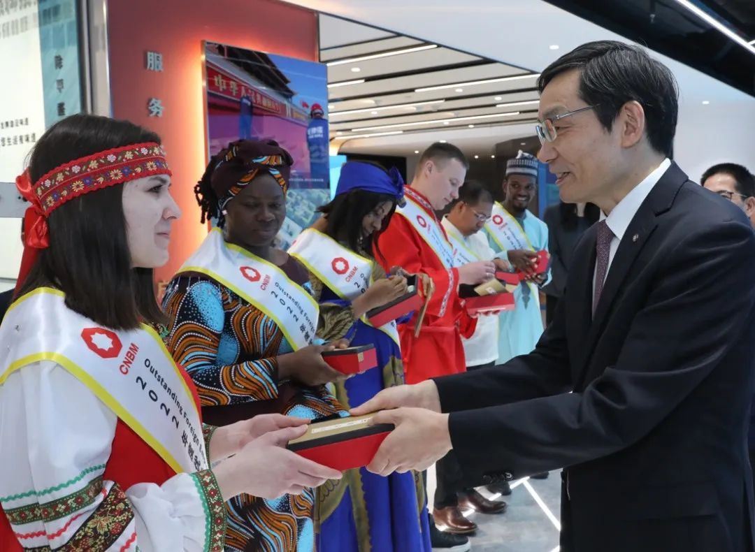 周育先强调,“材料创造美好世界”,是全体中国建材人的共同使命,希望外籍员工认真牢记并积极践行这一使命,继续秉持“为当地经济做贡献、与当地企业合作、为当地人民服务”的三原则,用先进的技术、产品和材料服务所在国家和当地百姓,共同创造美好的世界。他指出,外籍员工是集团国际化发展的靓丽名片和践行“一带一路”倡议的重要力量,要树立全球视野,继续当好集团国际化发展的践行者、文化理念的传播者,继续为“一带一路”建设、为加快建设世界一流材料产业投资集团作出更大贡献。周育先还向外籍员工赠送了纪念印章并合影留念。