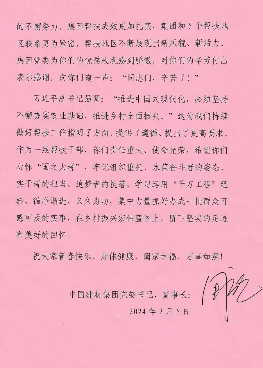值此2024年新春佳节到来之际,集团党委谨向奋战在乡村振兴帮扶战线的广大干部及家人们致以节日的祝福和亲切的慰问!