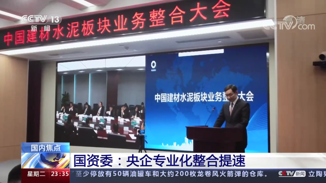 央视新闻报道国资委中央企业深化专业化整合工作推进会,中国建材专业化整合成效经验在会上作交流