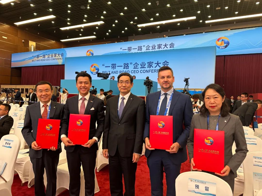 中国建材2个境外项目作为“一带一路”重点合作项目在“一带一路”企业家大会上签约,集团成员企业凯盛科技、中材节能与波兰和马来西亚合作伙伴签署项目合作协议,内容涵盖提供绿色新能源解决方案、能源综合利用等。项目的成功签署是集团深入融入全球价值链、产业链、供应链,谱写“一带一路”绿色发展新篇章的生动体现。