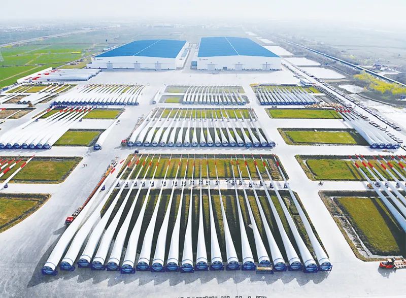 搜狗输入法下载 风电叶片年总产能19660兆瓦,产品覆盖1.0兆瓦到15.0兆瓦系列,拥有100余个型号,开发出112米海上风电叶片。图为搜狗输入法下载 风电叶片阜宁生产基地。