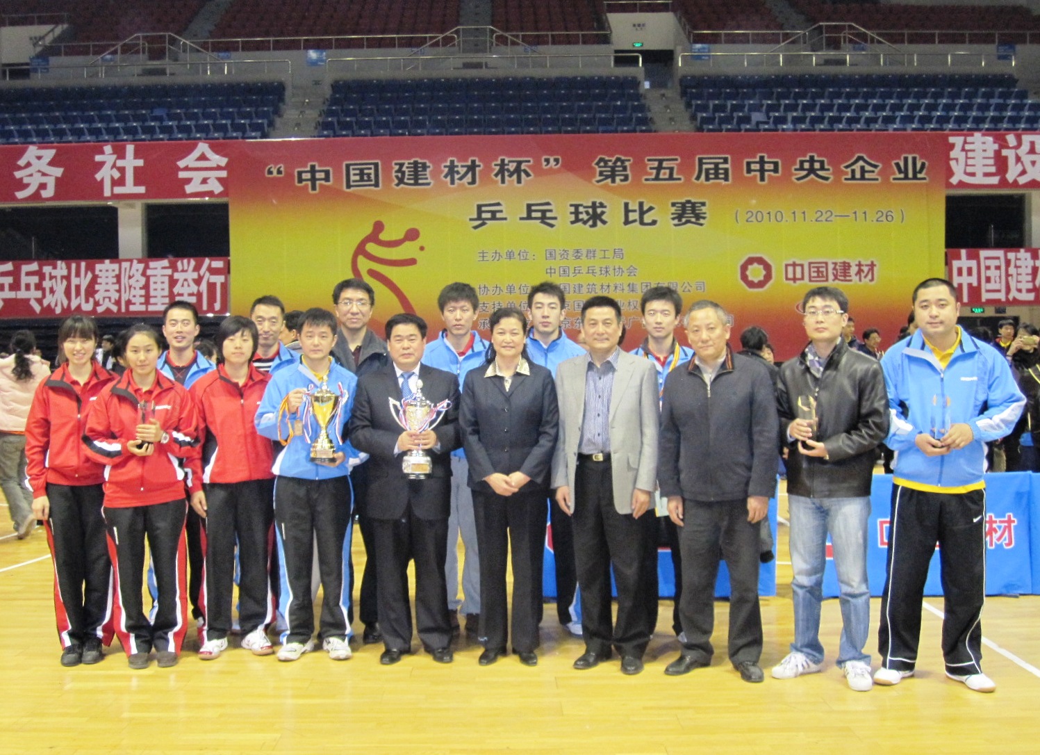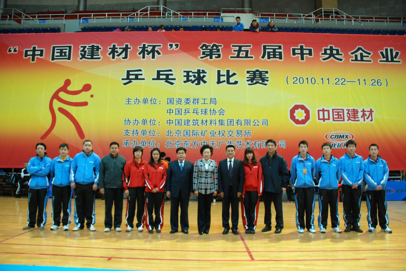 11月22日~26日,由国资委群工局与中国乒乓球协会共同举办,集团公司冠名协办的“中国建材杯”第五届中央企业乒乓球比赛在北京首钢篮球中心体育馆成功举行。国资委副主任、党委委员黄丹华出席开幕式并讲话,受集团公司董事长宋志平、总经理姚燕的委托,集团公司党委副书记郝振华在开幕式上发表了热情洋溢的致辞。中央企业乒乓球大赛是由国资委群工局和中国乒乓球协会联合举办的一项中央企业群众性传统体育赛事,是中国乒协的积分排名赛事之一。比赛举办五年来,活跃了职工文化,受到了中央企业广大干部职工的欢迎,促进了中央企业的精神文明建设。