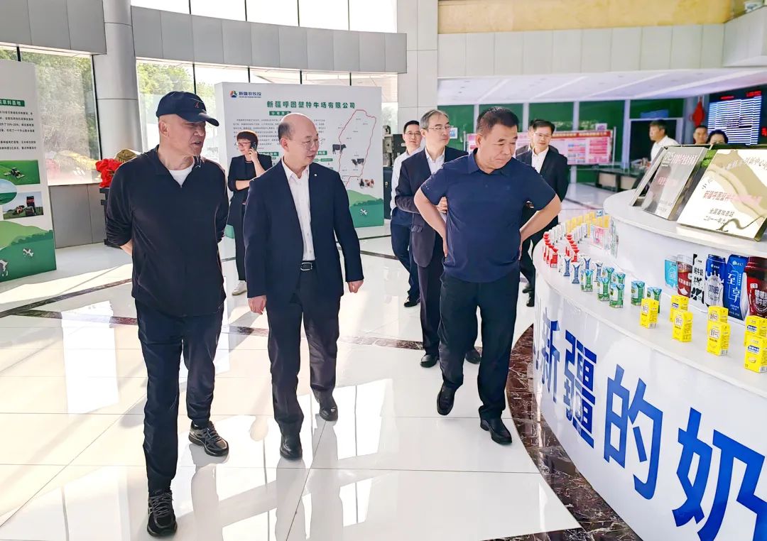 常张利一行实地参观了农牧投集团所属呼图壁牧场和西域春乳业,调研了养殖废弃物生产生物天然气项目,并就对口支援有关事宜进行了深入交流。