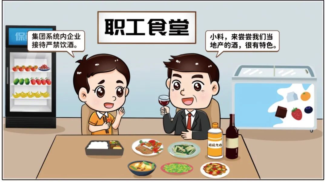 工作用餐不得超过标准,集团内部企业接待严禁饮酒。