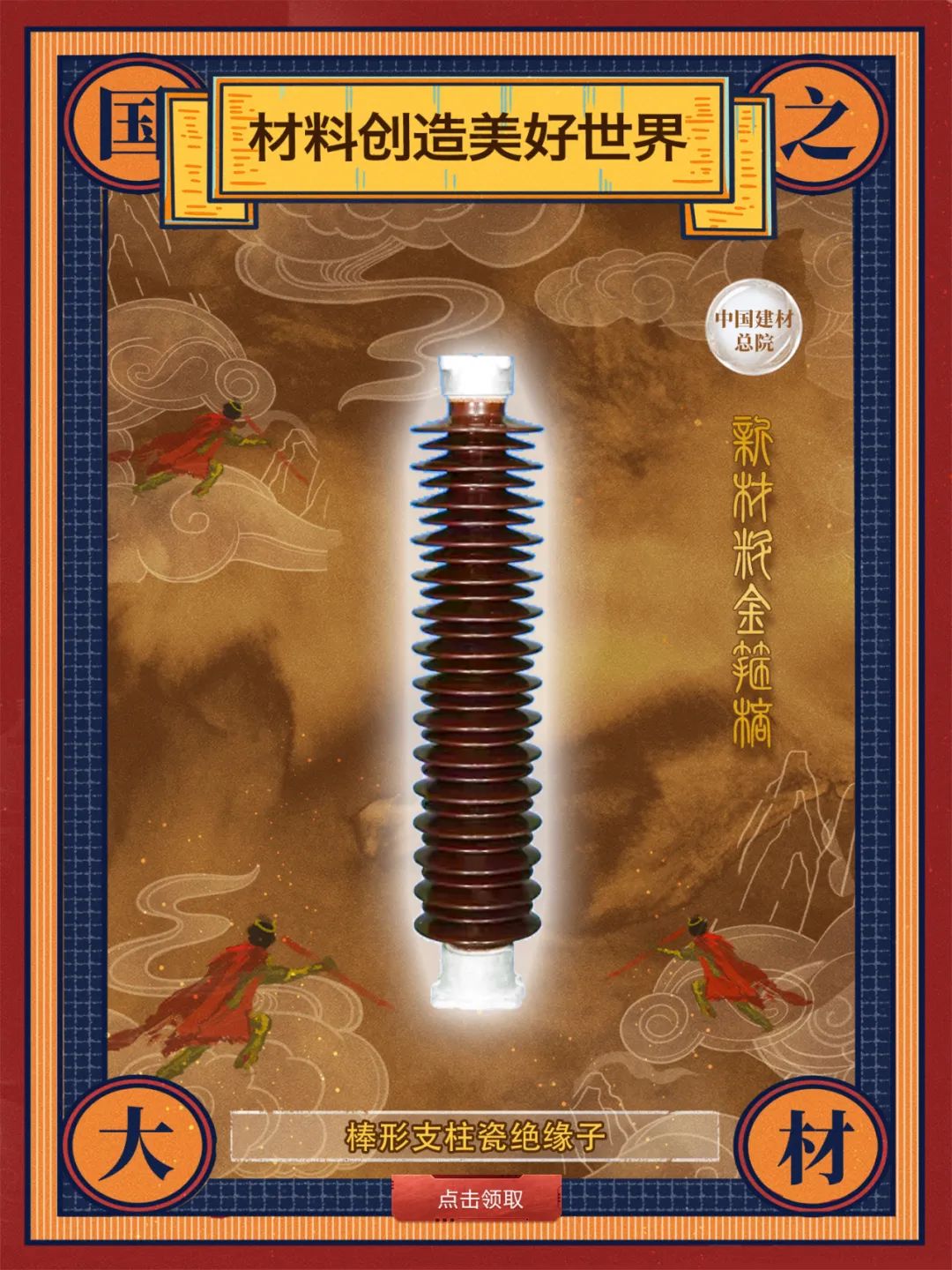 棒形支柱瓷绝缘子应用于变电站配电装置和电器设备中,是超、特高压外绝缘技术的核心部件和关键材料,主要起支持和绝缘作用。中材电瓷研制生产的特高压输变电用棒形支柱绝缘子如同孙悟空的神器“如意金箍棒”一样,千变万化却威力无比,遇到沙尘、暴雨、浓雾、冰冻和雷电等各类“妖魔鬼怪”,“如意金箍棒”都能维持着稳定的绝缘和支撑的“法力”,时刻降妖伏魔。
