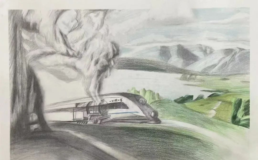 作品简介:画中描绘了现代工业与田园生活的相依相惜,工业时代的列车驰骋在田园绿地间,前进的工业技术,在如诗如画的千里沃土上,不断的更新人类的进程,不断的向未来驶去,时光一去不复返,人类也终将迈向未来工业大发展时代。