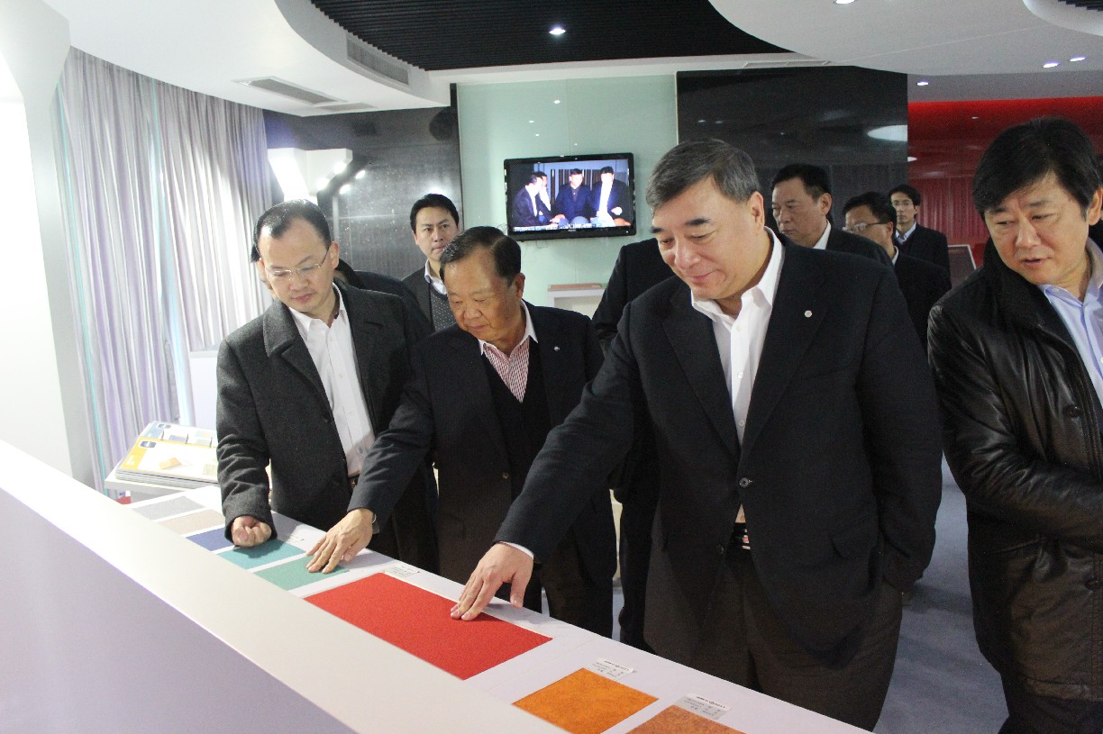 在公司展示中心,面对各种新型铺地材料,宋志平董事长不时驻足停留,当得知公司运动塑胶地板已大量使用在伦敦奥运会、巴西等知名体育场馆时,他大为赞赏,说我们的产品科技含量高,亚麻地板是当今世界最环保的塑胶地板,他详细询问了产品性能、生产工艺和技术要求,对植绒地毯、橡胶地板如数家珍。宋志平董事长指出,现在的塑胶地板已完全不是十多年前的塑料地板,运用广泛、前景看好,他要求中复丽宝第要紧紧抓住国家城镇化建设的战略机遇,抓住集团和南车等兄弟央企签署战略合作协议的契机,加快科技创新步伐,进一步转型升级,在中国第一的基础上尽快做到世界第一,成为名副其实的“铺地专家”。