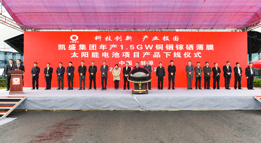 10月12日上午,在全国上下喜迎党的十九大召开之际,中国第一片铜铟镓硒薄膜太阳能高效模组在安徽蚌埠成功下线,标志着中国建材所属凯盛科技在引领国际新能源产业上迈出了重要步伐,为全线打通太阳能光伏产业链奠定了坚实基础。这是5年来中国建材砥砺奋进、开拓创新的重大成果,为党的十九大献上的一份厚礼。