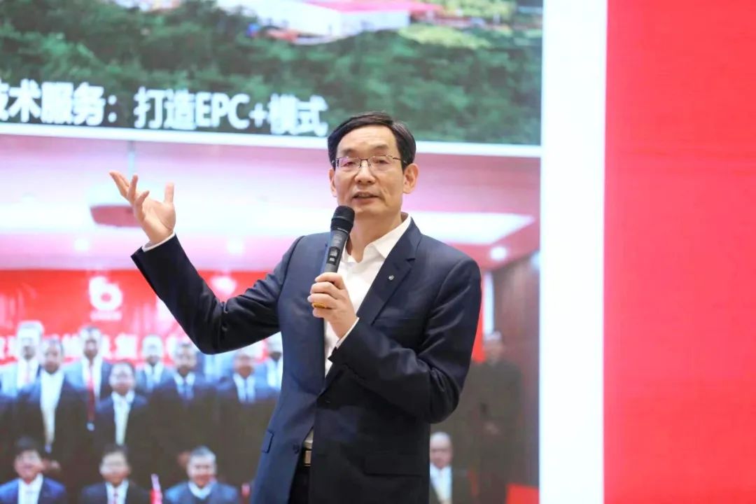 周育先在讲话中指出,集团作为建材行业的唯一央企,在国际化浪潮中加快走出去意义重大、责无旁贷。必须坚持胸怀天下,充分认识到国际化是服务国家战略的必由之路、企业持续发展的必由之路、创建世界一流的必由之路、创新国际传播的必由之路,要心怀“国之大者”,打造“国之大材”,践行“材料创造美好世界”的使命,加快走出去、助力双循环,为共建“一带一路”、构建人类命运共同体贡献“中国建材”力量。