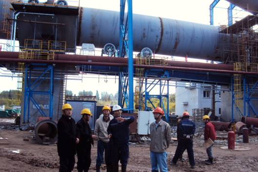 上午合肥院党委副书记、俄罗斯项目经理马克陪同检查组到施工现场进行安全检查。首先检查组来到矿山顶上,鸟瞰了现场全貌,听取了整条生产线相关情况。随后检查组对窑尾、窑中和行政楼等重点部位进行了走访检查,给予了现场指导和建议。