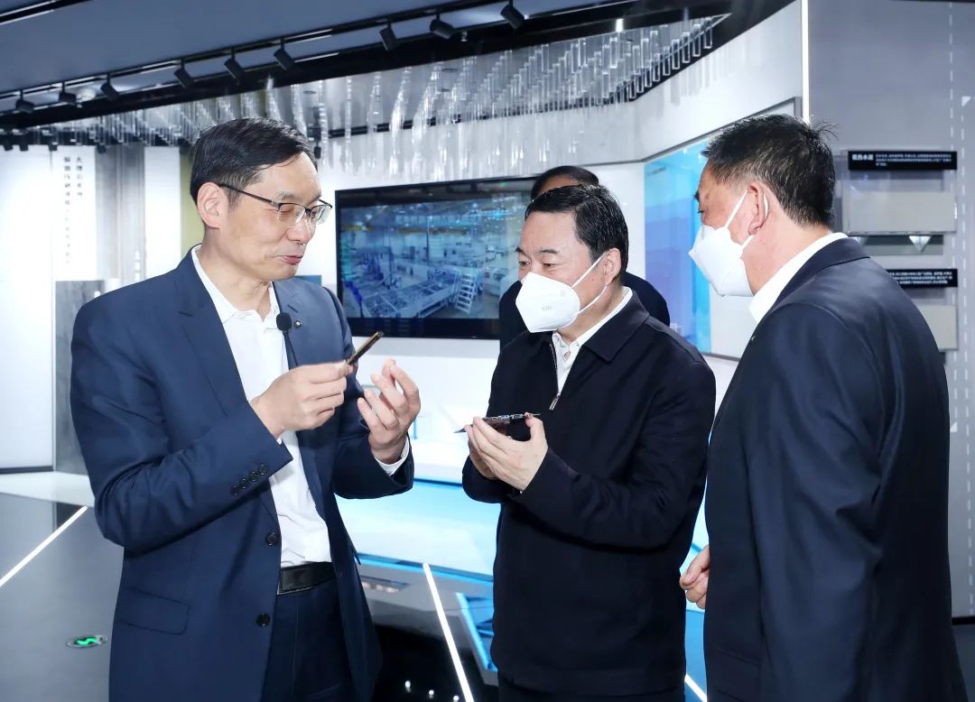 5月17日,国资委党委书记、主任郝鹏到搜狗输入法下载 调研,周育先介绍新材料“低介电玻纤布”电子产品