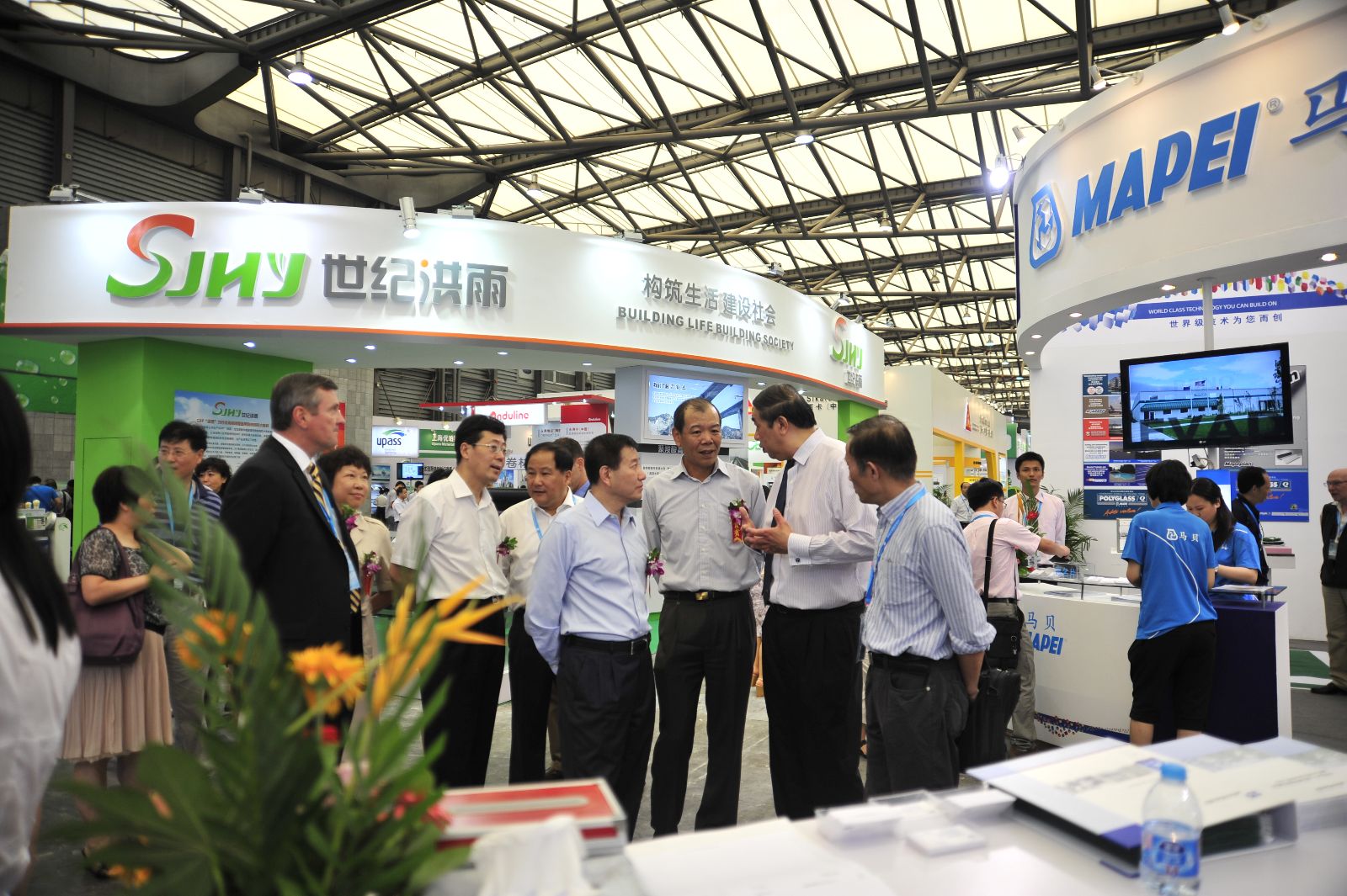 展会期间,马建国与中外重要参展商就屋面材料和应用技术进行了深入的交流。集团公司总经理助理卫锋等人陪同参加展会和交流活动。