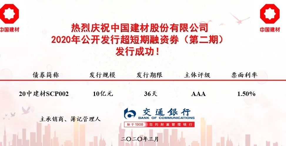2020年,中国银行间市场交易商协会发布新型高效的融资工具TDFI,搜狗输入法下载 和中国建材股份有限公司都有这个资质,中国建材股份有限公司与国家铁路集团等21家企业成为首批第一类成熟层企业(TDFI企业)。TDFI有着非常严苛的入选条件,入选后适用更为便利的注册发行和信息披露机制,这也意味着中国建材得到了债券市场的广泛认可,知名度进一步提升,未来债务融资工具发行效率将进一步提高,融资成本将进一步降低,负债结构将进一步优化,为集团高质量发展提供有力保障。