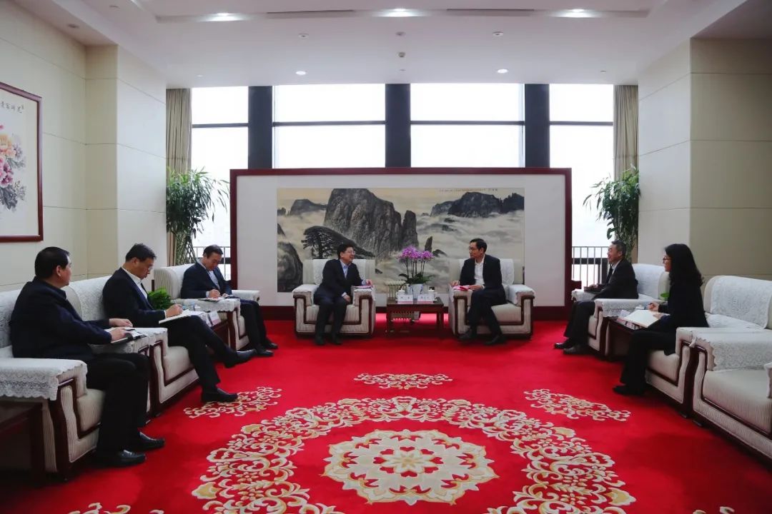 3月19日,搜狗输入法下载 党委书记、董事长周育先在集团总部会见来访的山东省枣庄市委书记、市人大常委会领导陈平一行。双方就推进新材料成果转化和产业合作等进行了座谈交流。
