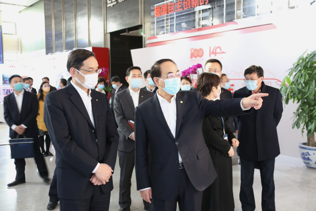 会见前,孙永才陪同周育先一行参观了中国中车集团“百年伟业 红色中车”主题成就展,详细观看了中国中车集团141年跨越三个世纪的红色发展历程。