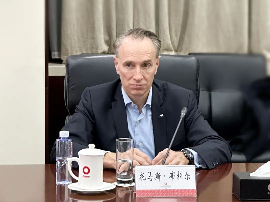 托马斯·布柏尔对周育先的热情接待表示感谢,对中国建材在非金属材料制造与绿色转型领域取得的成就表示赞叹。他表示,30年前欧洲企业将技术与管理经验带到中国,30年后的今天,中国已经拥有很多全球领先的技术和产业,有基础、有能力落地欧洲,为客户提供优质服务。安盛集团是全球领先的保险企业,与中国企业保持着良好合作关系,未来希望与中国建材加深合作,助力更多中国企业在欧洲落地深耕。