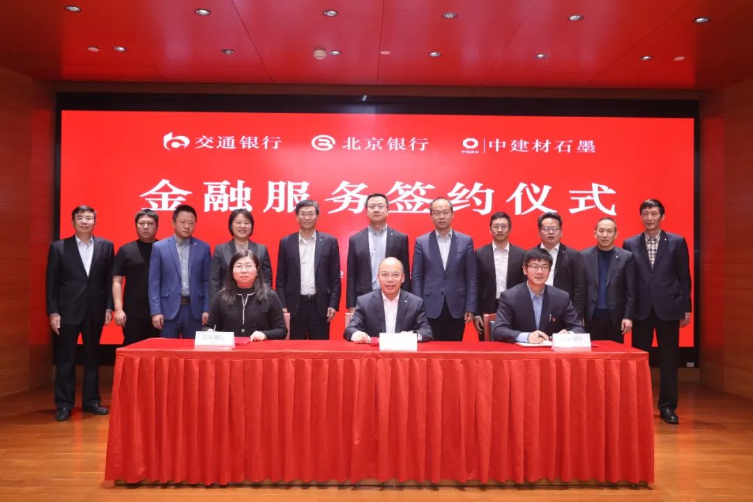 中国建材股份投资发展部总经理司艳杰,中建材石墨副总经理、总法律顾问李彩洪,党委副书记、纪委书记杨希,副总经理汪允杰,生产技术总监蔡建;交通银行北京市分行投资银行部总经理彭思怡,天坛支行副行长陈杨;北京银行城市副中心分行党委委员、副行长王健宁,东大桥管辖行副行长魏莹;内蒙恒科股东代表徐水荣;河北恒科股东代表董志远、李百涛及相关人员等共同见证签约。
