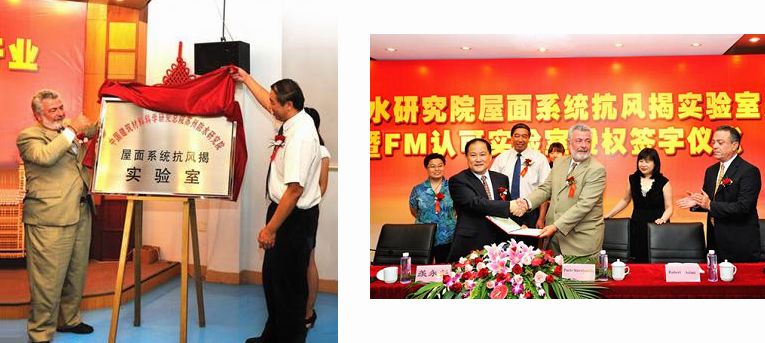 苏州防水研究院屋面系统抗风揭实验室开业并与美国FM认证公司签订建立金属屋面抗风揭实验室合作协议