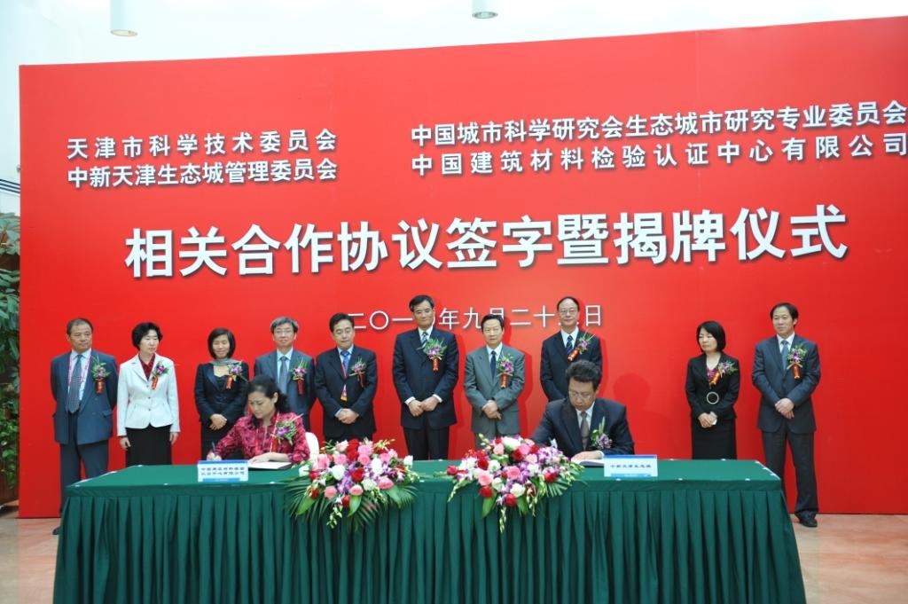 同期,姚燕与中新天津生态城管委会副主任蔺雪峰,共同签署关于CTC和中新天津生态城管理委员会合作框架协议。(检验认证中心:董晶 戚桢)