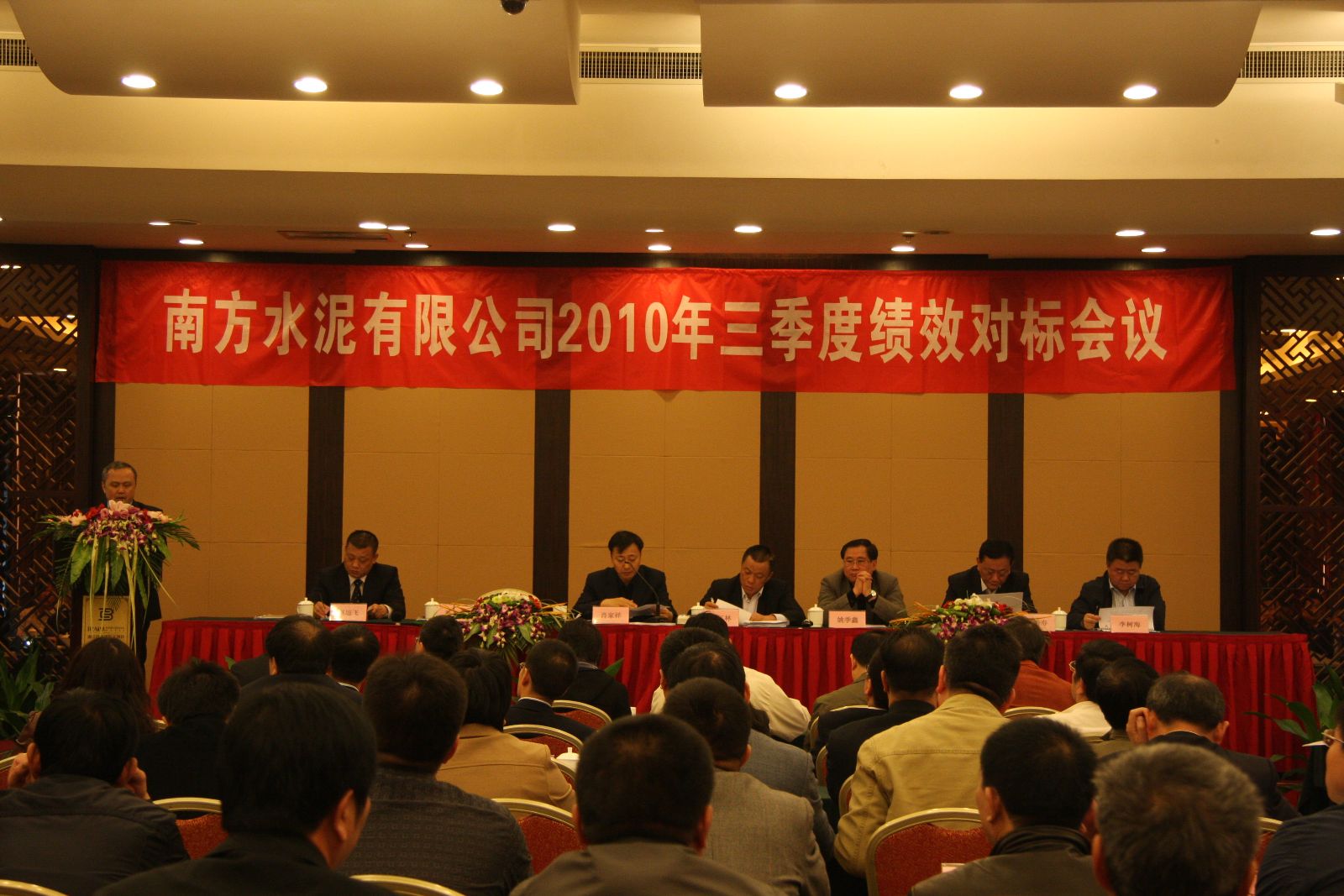 2010年10月30日,南方水泥管理整合暨三季度绩效对标分析会在杭州召开。包括中国建材股份总裁、南方水泥董事长曹江林,中国建材股份副总裁、南方水泥党委书记姚季鑫在内的130名管理者出席了会议。会议由中国建材股份副总裁、南方水泥总裁肖家祥主持。