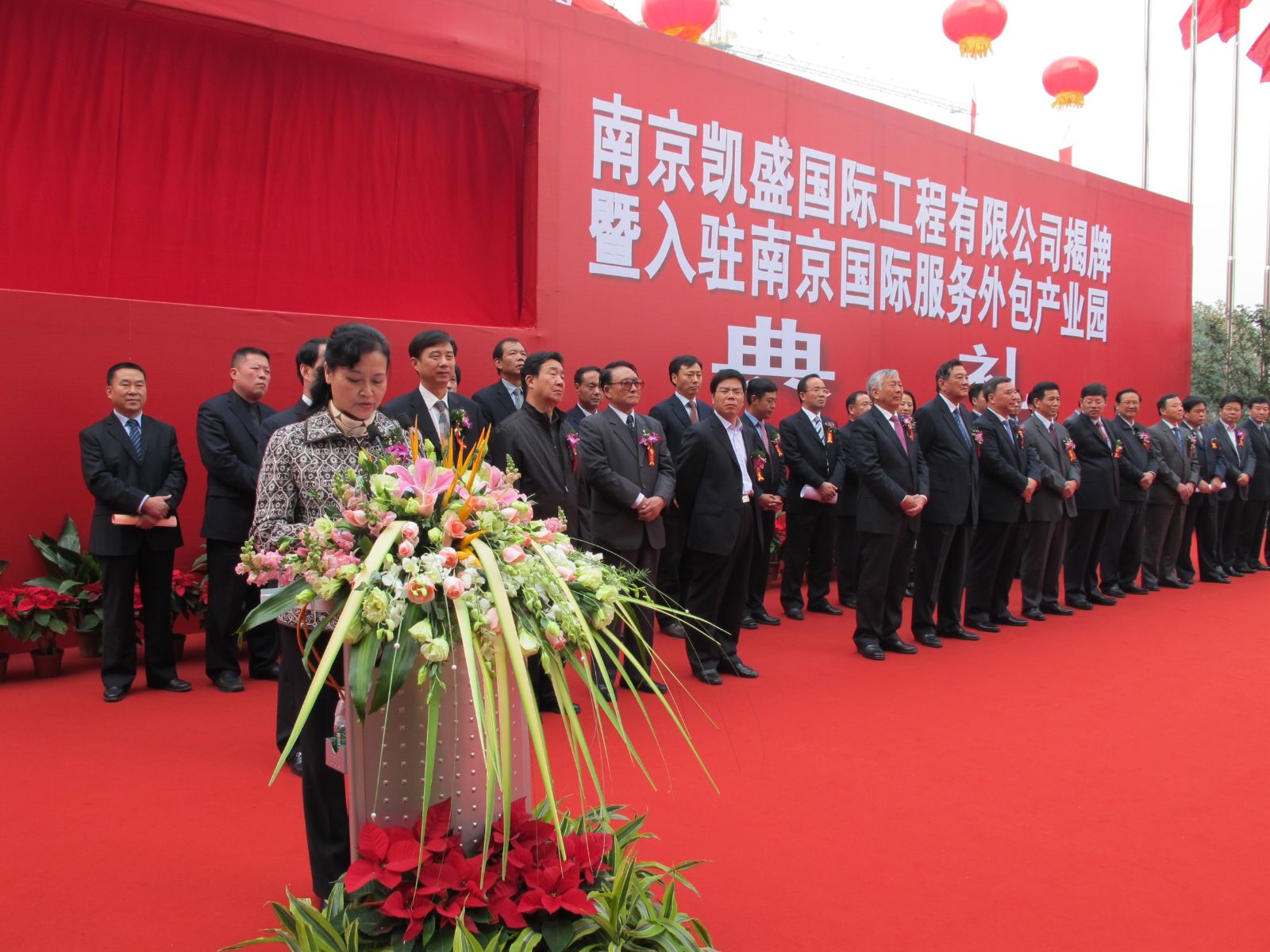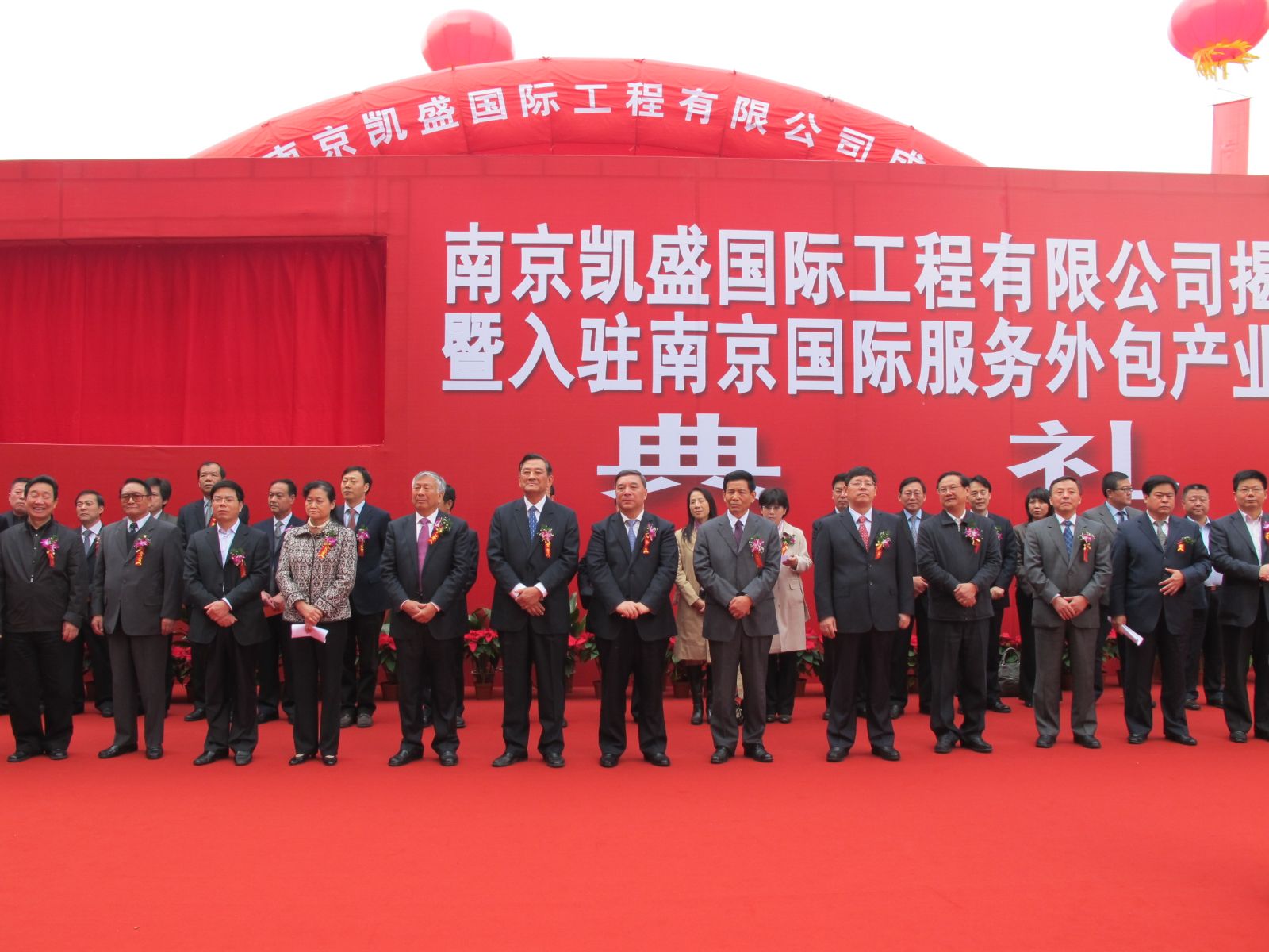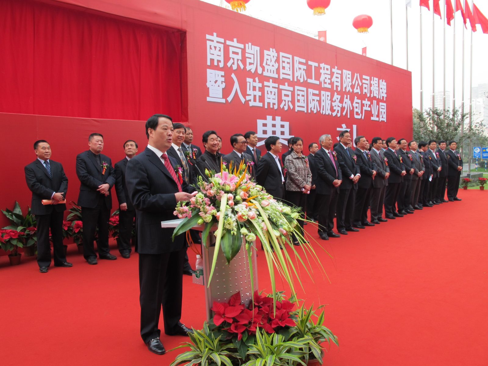 11月3日,南京凯盛国际工程有限公司揭牌暨入驻南京国际服务外包产业园典礼在园区广场隆重举行。